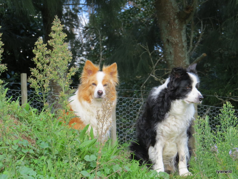 And here is my beautiful Maddie and the Bruce Goose.. they were up on the bank watching the pups.. Both 12 years old and feeling pleased they didn’t have to look after the mad babies below!!