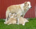 Brucie loved children and any young animals. He had this huge protecting need in him.. He would always stay by the kids and not let them out of his sight.. All the baby animal (particularly puppies) Brucie would just sit & keep an eye on them,, A few times he went a tad over the top with his protecting of pups and not let the mothers in the whelping box.. He lost those battles!!