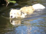 He loved the water and would leap at heights off the bank into our creek.. anything to get somewhere fast & first.. At 7 mnths he broke his toe doing jumping into the creek so for a while we had to have controlled walks to let it repair.. man he hated that.. it was like torture for him being on the lead and not running. It was the only accident we had with him although he still was crazy..